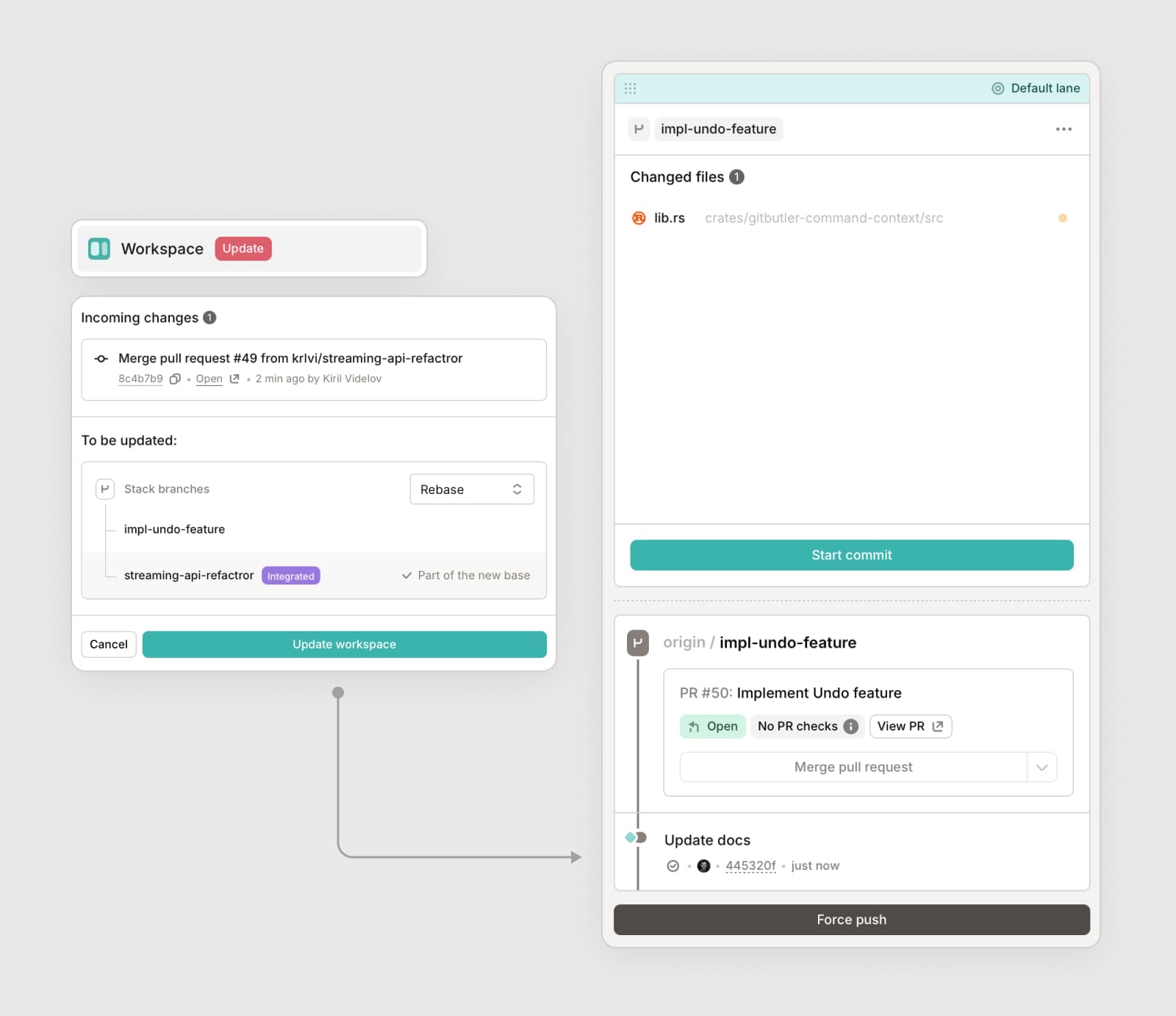 The app will support any merge strategy you wish to use - "Merge", "Rebase" or "Squash". However, due to the nature of merge, the GitButler will be able to create a slightly better experience if the "Merge" strategy is used. The reason for this is with merge commits you will be able to merge all the branches in the stack from GitHub without having to force push in the app.